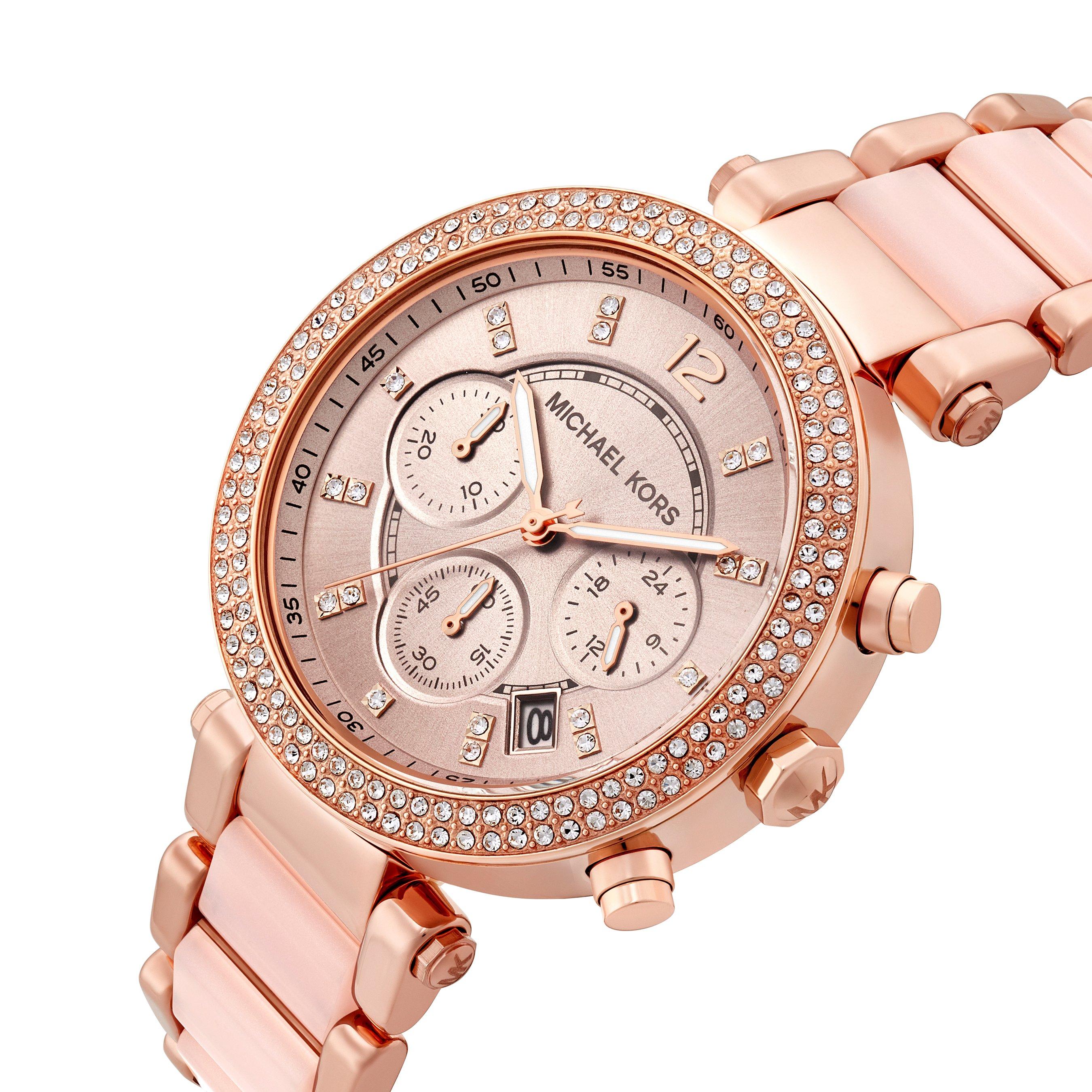 Product Name: Michael kors parker rose glitz chronograph ladies watch outlet